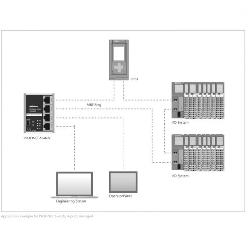 Features Media Redundancy Protocol (MRP), automatic addressing / topology detection (LLDP, DCP)