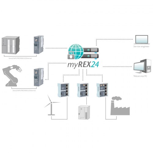 VPN portál myREX24 slouží jako zprostředkovatelský server pro VPN komunikaci mezi poskytovatelem vzdálené údržby a zákaznickým zařízením: